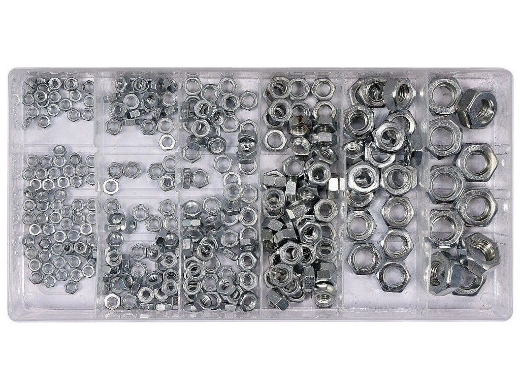 Sada 300 metrických matíc obsahuje veľkosti M3, M4, M5, M6, M8, M10. Celá súprava je uložená v praktickom balení typu "sorter".